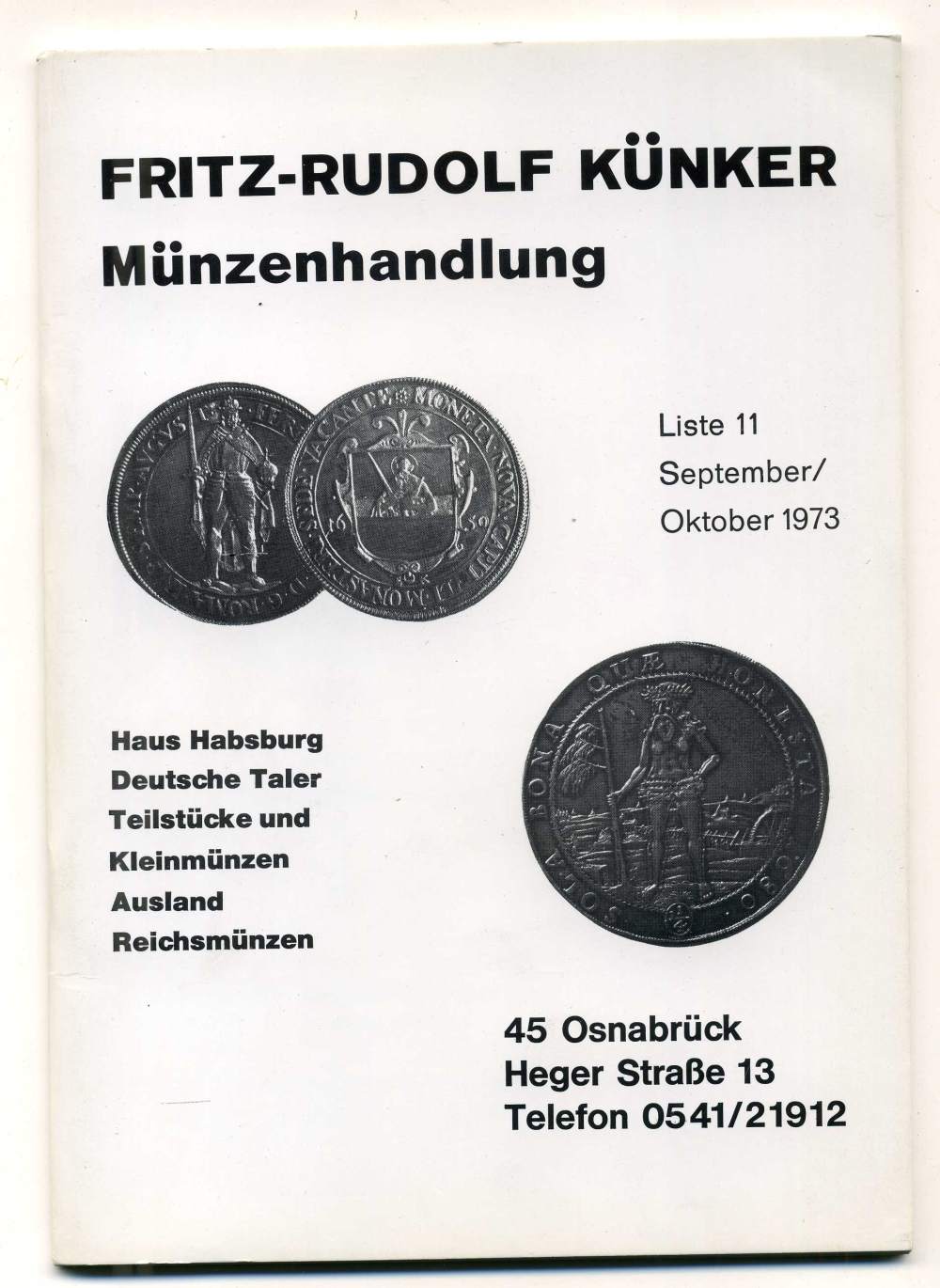 ФРИТЦ-РУДОЛЬФ КЮНКЕР КАТАЛОГ ФИКСИРОВАННЫХ ПРОДАЖ (LAGERKATALOG) 1973 СЕНТЯБРЬ, № 11 00-01-01-11