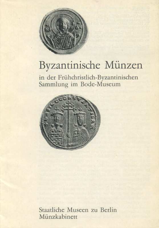 ГОСУДАРСТВЕННЫЙ БЕРЛИНСКИЙ МУЗЕЙ. МЮНЦКАБИНЕТ ВИЗАНТИЙСКИЕ МОНЕТЫ ИЗ КОЛЛЕКЦИИ РАННИХ ХРИСТИАНСКИХ И ВИЗАНТИЙСКИХ МОНЕТ МУЗЕЯ БОДЕ 1977 STAATLICHE MUSEEN ZU BERLIN. MUNZKABINETT, BYZANTINISCHE MUNZEN IN DER FRUHCHRISTLICH-BYZANTINISCHEN SAMMLUNG IM BODE-M