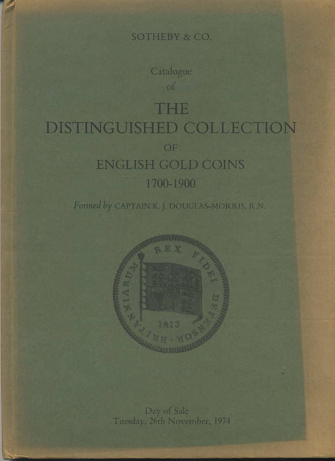 КАПИТАН К. ДЖ. ДУГЛАС-МОРРИС КАТАЛОГ САМЫХ ЗНАМЕНИТЫХ КОЛЛЕКЦИЙ АНГЛИЙСКИХ ЗОЛОТЫХ МОНЕТ 1700-1900 1974 CAPTAIN K. J. DOUGLAS-MORRIS CATALOGUE OF THE DESTINGUISHED COLLECTION OF ENGLISH GOLD COINS 1700-1900, 237 ЛОТОВ + ИЛЛЮСТРАЦИИ 00-01-02-03