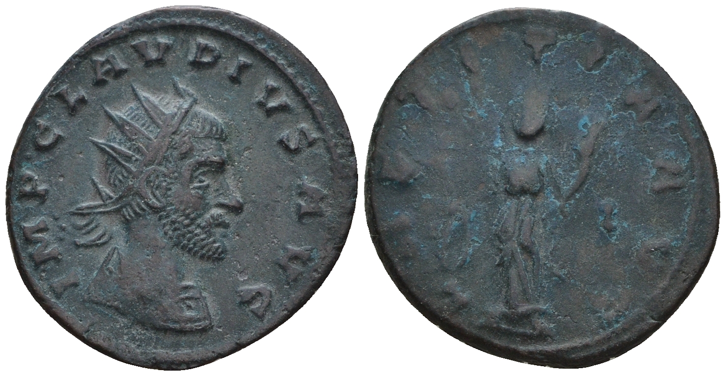 Римская Империя антониниан 270 Клавдий II Готский, IMP CLAVDIVS AVG, бюст императора / LAETITIA AVG, Летиция, персонификация Веселья, Рим RIC 56 биллон 1073-25-52