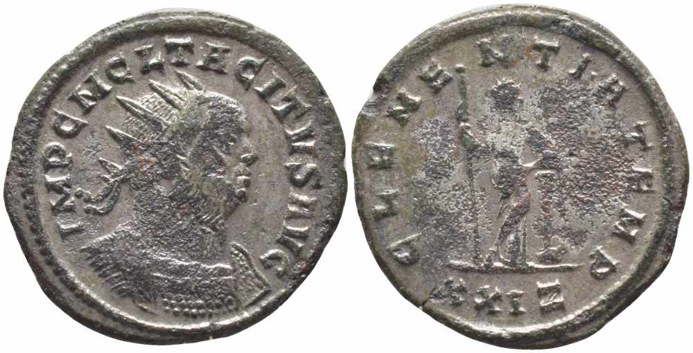 Римская Империя аврелианиан 276 Тацит CLEMENTIA TEMP Рим Good Very fine RIC 84 бронза, серебрение 1073-16-43