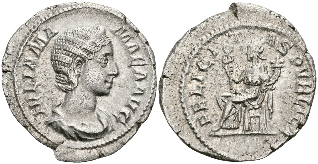Римская Империя денарий 228 Юлия Мамея, мать Александра Севера FELICITAS PVBLICA Фелицитата, персонификация Счастья Рим Good Very fine RIC 335 серебро 1073-4-8-4