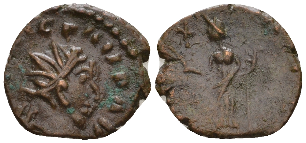 Римская Империя, императоры в Галлии антониниан 272 - 274 Тетрик II в ранге цезаря, C PIV ESV TETRICVS CAES, бюст цезаря / PAX AVG, Пация, персонификация Мира, локальная чеканка в Галлии RIC 248 биллон 1073-25-116
