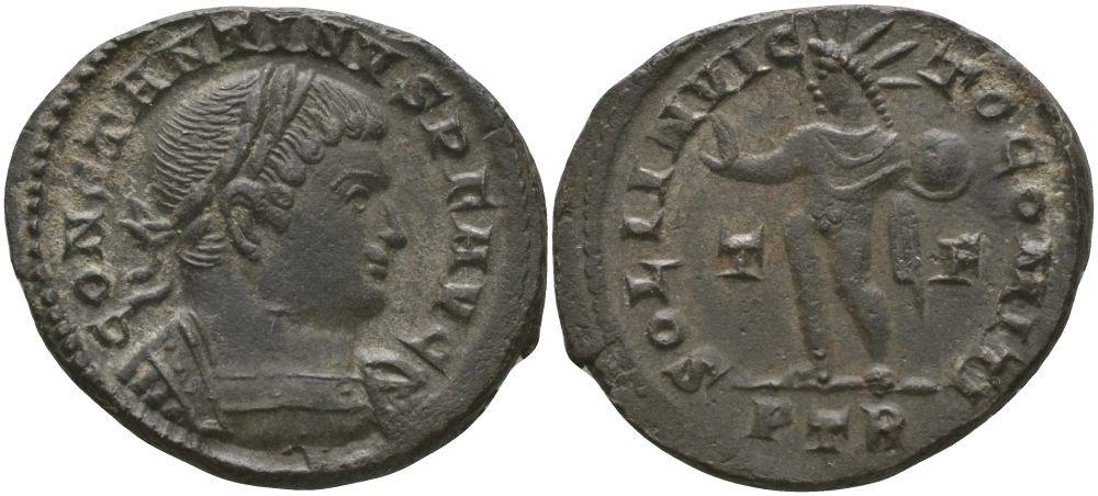 Римская Империя нуммий 310 - 313 Константин I Великий SOLI INVICTO COMITI Августа Треверов Extremely fine RIC 873 бронза 1073-11-66
