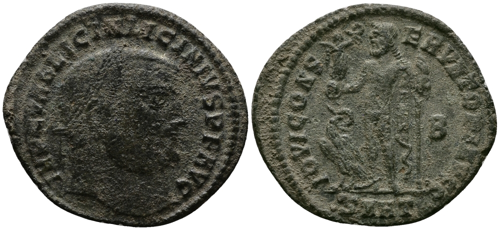 Римская Империя нуммий 313 - 314 Лициний IOVI CONSERVATORI AVGG Гераклея Good Very fine (степень редкости R3) RIC 6 бронза 1073-6-24
