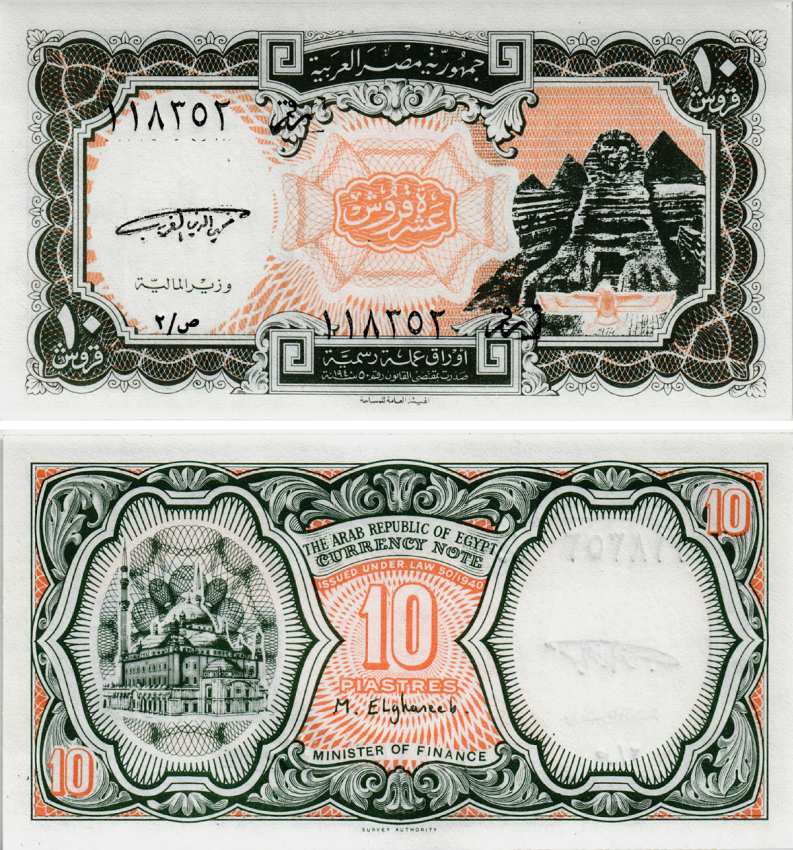 ЕГИПЕТ 10 ПИАСТРОВ 1998 СЕРИЯ 2, СФИНКС, ПИРАМИДЫ, ПОДПИСЬ EL GHAREEB, ОРАНЖЕВАЯ Pick 187 бумага UNC (ПРЕСС) 8595-8-2-2