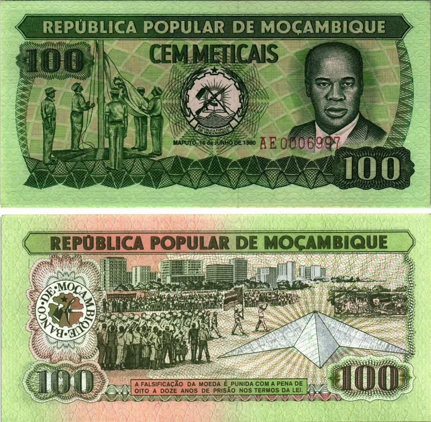 Мозамбик 100 метикалов 1980 Эдуардо Мондлане, поднятие флага Pick 126 бумага UNC (пресс) 7200-19-3