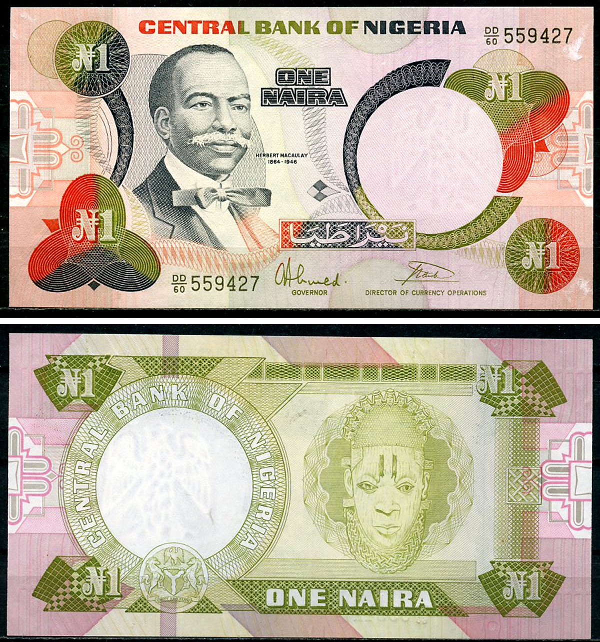 Нигерия 1 найра ND (1984- ) Герберт Маколей, маска Pick 23 b бумага UNC (пресс) 7218-8-3-2