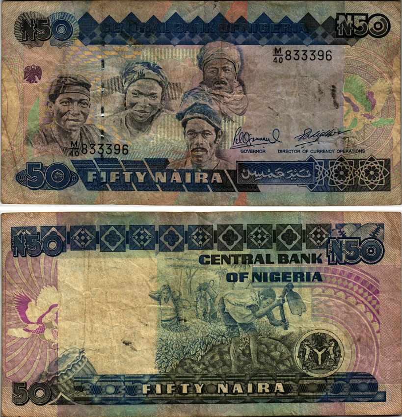 Нигерия 50 найра ND (1991-2000) жители Нигерии, подпись 10 Pick 27 c бумага 6299-60-2-2