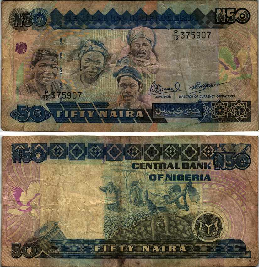 Нигерия 50 найра ND (1991-2000) жители Нигерии, подпись 10 Pick 27 c бумага 6299-61-1-2
