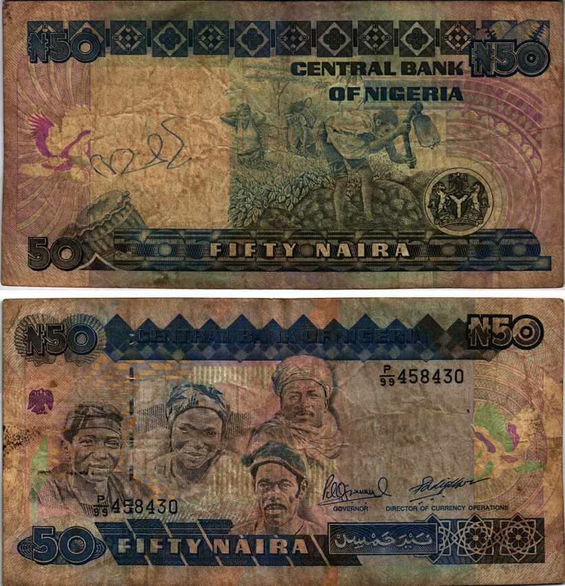Нигерия 50 найра ND (1991-2000) жители Нигерии, подпись 10 Pick 27 c бумага 6312-55-3-1
