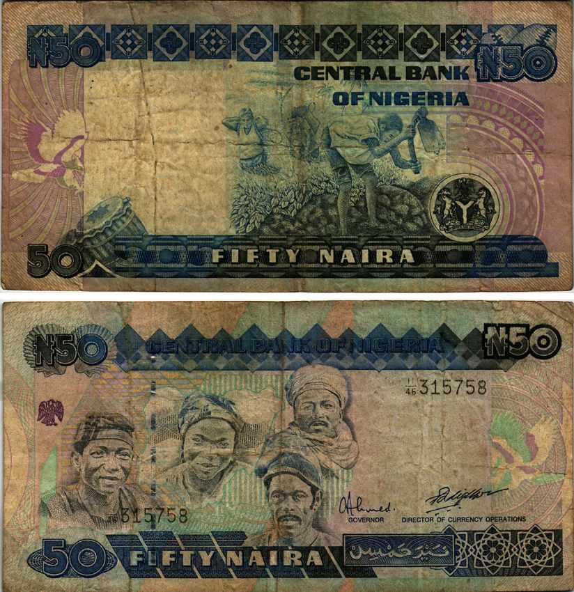 Нигерия 50 найра ND (1991-2000) жители Нигерии, подпись 9 Pick 27 b бумага 6299-59-3-2