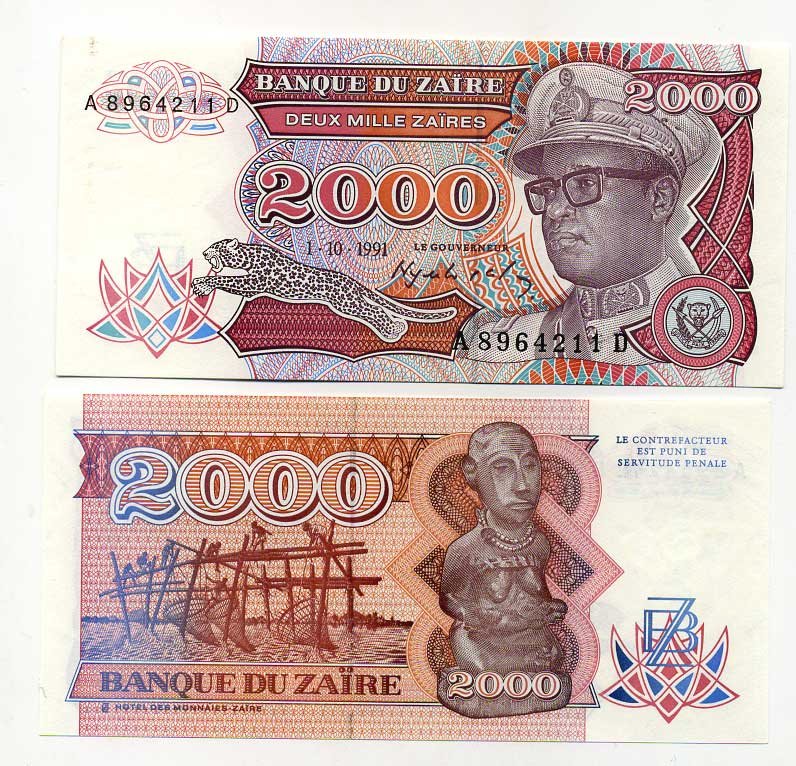 Заир 2000 заиров 1991 Мобуту Сесе Секо в военной форме, рыболовная пристань Pick 36 a бумага UNC (пресс) 448-46-2