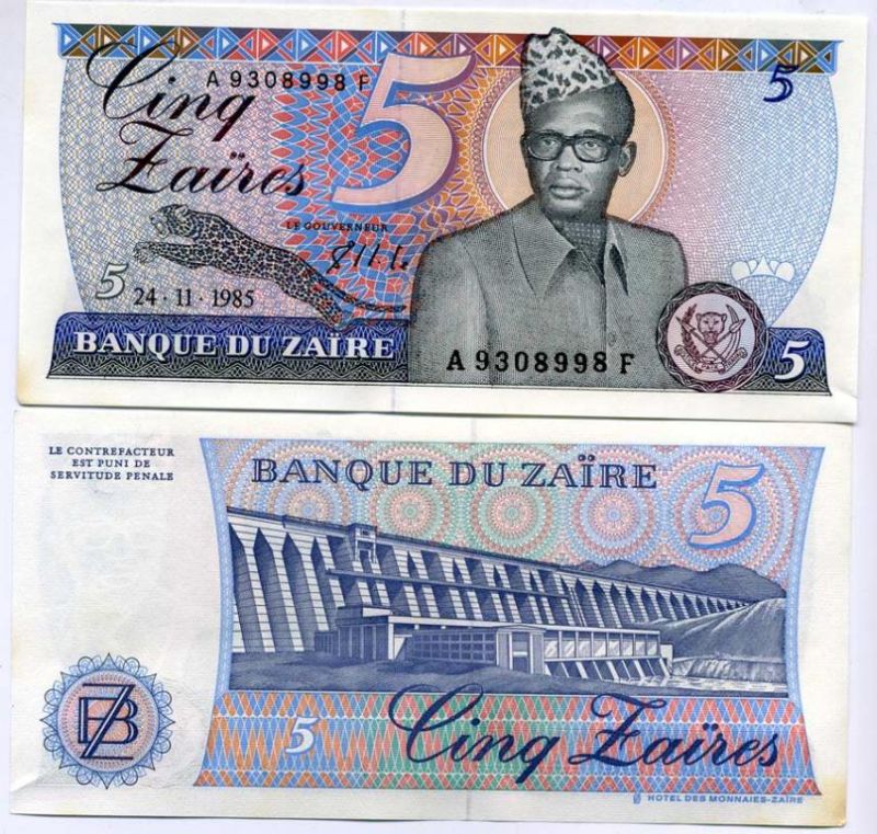 ЗАИР 5 ЗАИРОВ 1985 Pick 26A бумага UNC (ПРЕСС) 448-35-1