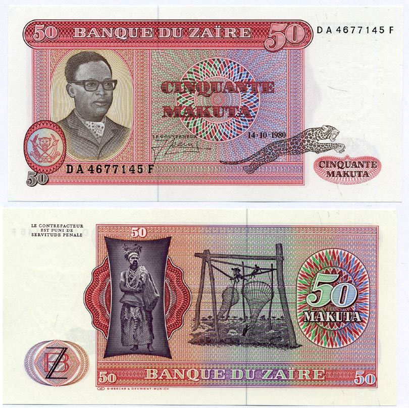ЗАИР 50 МАКУТА 1980 14 ОКТЯБРЯ 1980 Pick 17b бумага UNC (ПРЕСС) 7486-19-2-1