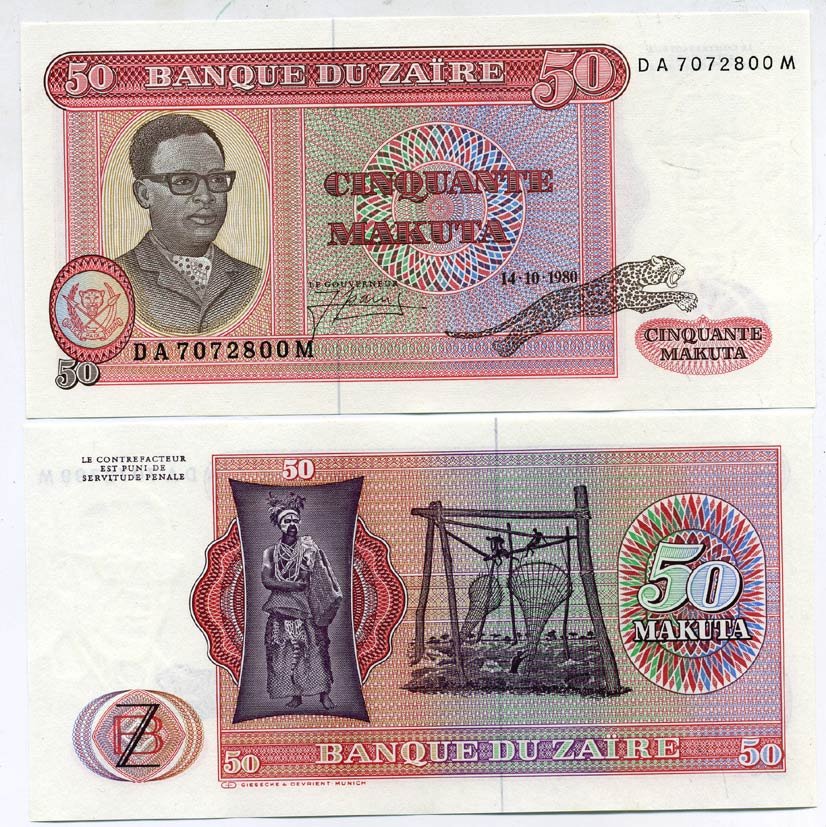 ЗАИР 50 МАКУТА 1980 Pick 17b бумага UNC (ПРЕСС) 448-36-1