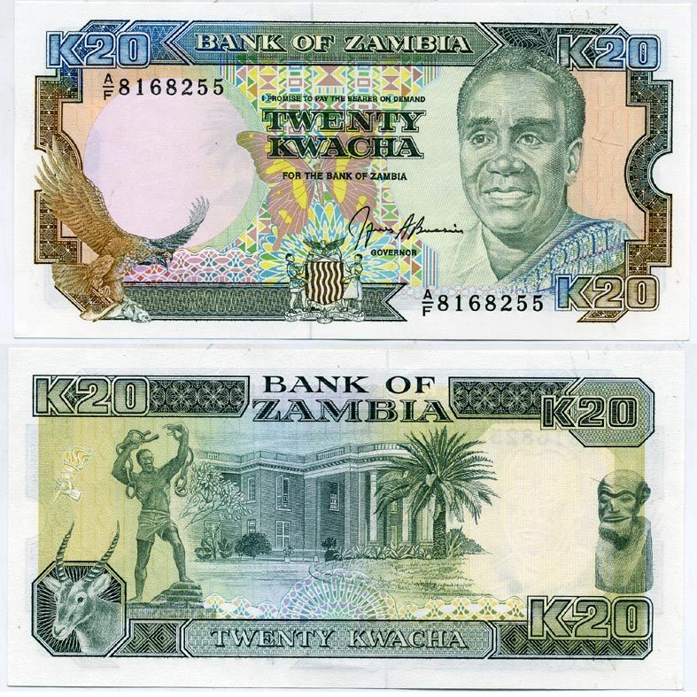 ЗАМБИЯ 20 КВАЧА 1989-1991 ПОДПИСЬ 9 Pick 32b бумага UNC (ПРЕСС) 7547-89-1