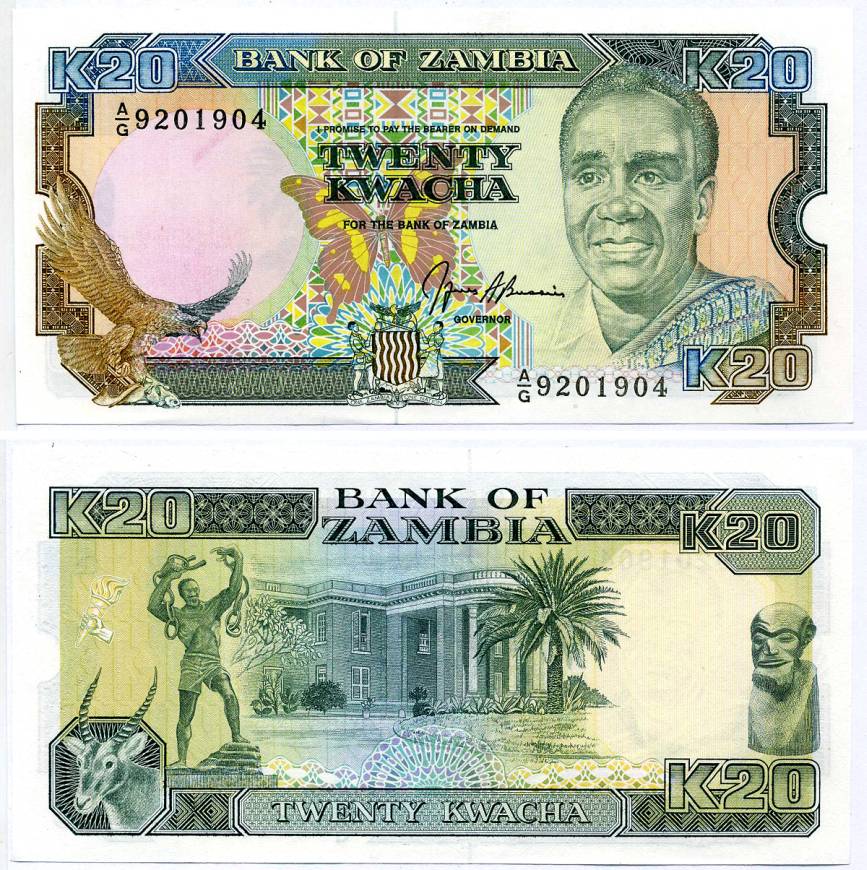 ЗАМБИЯ 20 КВАЧА 1989-1991 ПОДПИСЬ 9 Pick 32b бумага UNC (ПРЕСС) 8607-83-2-2