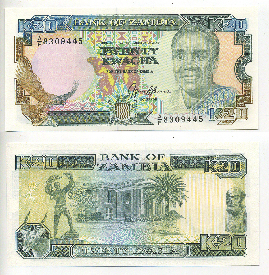 Замбия 20 квач ND (1989-1991) Кеннет Каунда, антилопа, президентский дворец, подпись Bussiere Pick 32 b бумага UNC (пресс) 2192-29-1
