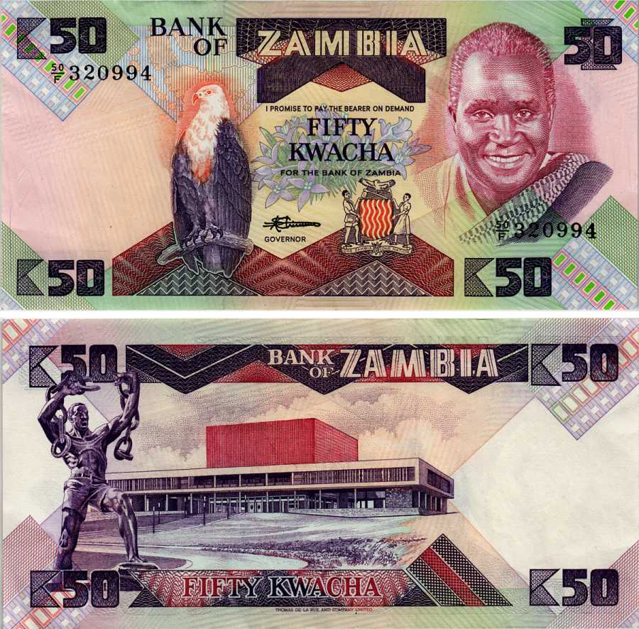 ЗАМБИЯ 50 КВАЧА 1980-1988 ПОДПИСЬ 7 Pick 27е бумага 6281-1-1-2