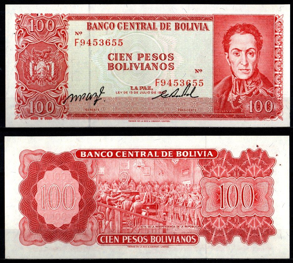 Боливия 100 боливиано 1962 Pick 163 a (20) бумага UNC (пресс) 6280-40-2-1