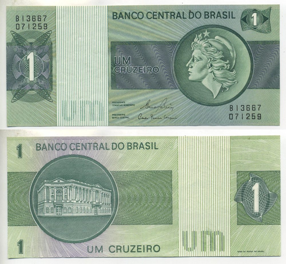 БРАЗИЛИЯ 1 КРУЗЕЙРО 1980 СЕРИЯ В 13667, ПОДПИСЬ 20, ГОЛОВА СВОБОДЫ Pick 191Ac бумага 7485-14-2