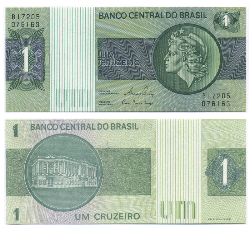 БРАЗИЛИЯ 1 КРУЗЕЙРО 1980 СЕРИЯ В 17205, ПОДПИСЬ 20, ГОЛОВА СВОБОДЫ Pick 191Ас бумага UNC (ПРЕСС) 445-40-3-1