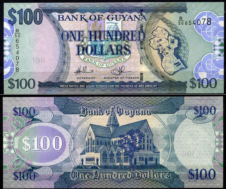 Гайана 100 долларов ND (2012) карта Гайаны, собор Святого Георгия, водяной знак 100 Pick 36 b2 бумага UNC (пресс) 447-2-3