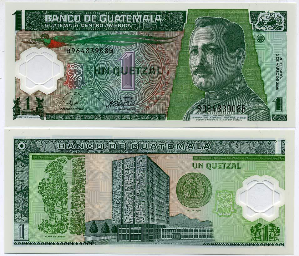 Гватемала 1 кетсаль 2008 12 марта 2008, генерал Хосе Мария Ореллано, президент Гватемалы (1921-1926) Pick 115 пластик UNC (пресс) 6293-39-1