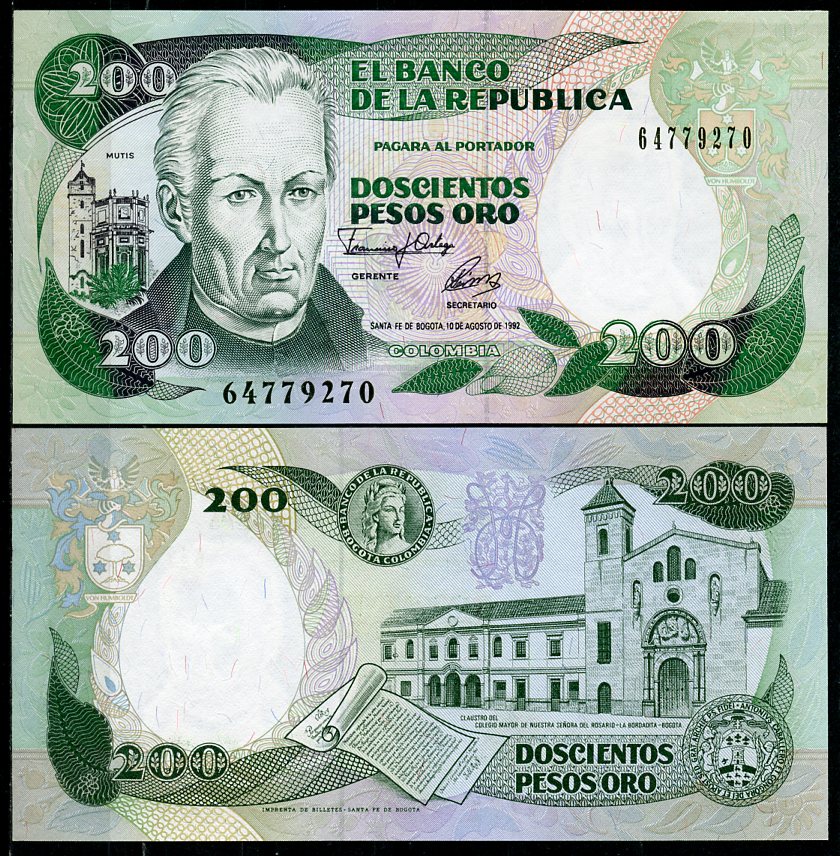 Колумбия 200 песо 1992 Хосе Селестино Мутис, монастырь Ла Бордадита, Богота Pick 429A бумага UNC (пресс) 447-120-1