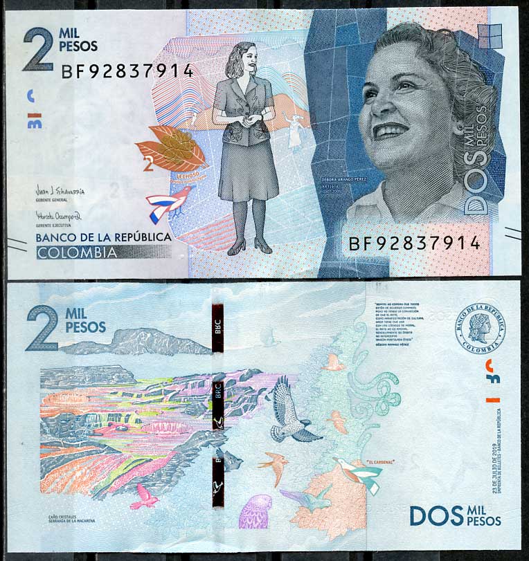Колумбия 2000 песо 2019 Дебора Аранго Pick 458 бумага UNC (пресс) 447-104-1