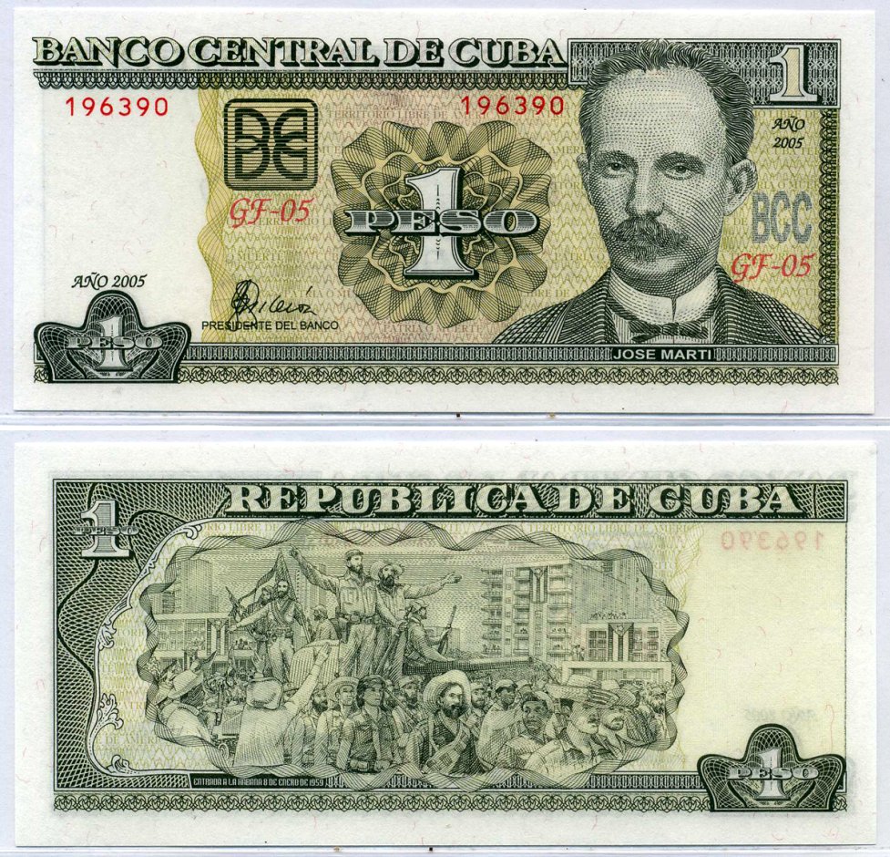 Куба 1 песо 2005 Хосе Марти Pick 121e бумага UNC (пресс) 8564-30-2-2