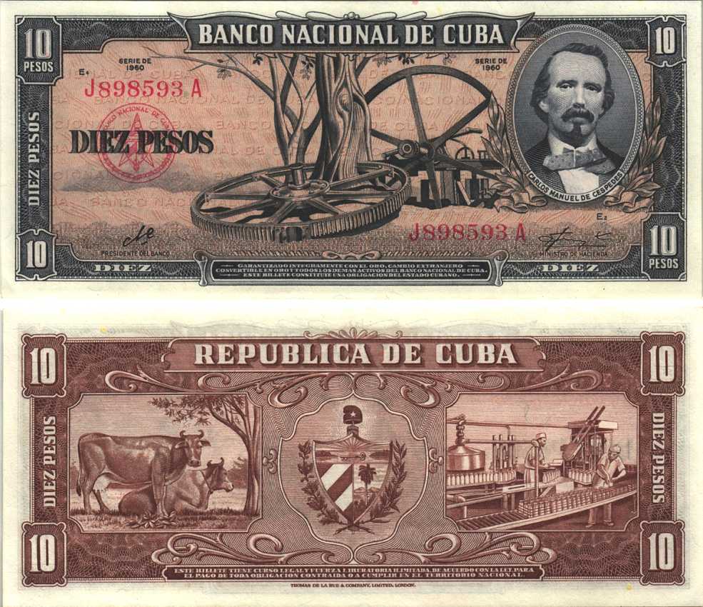 КУБА 10 ПЕСО 1960 КАРЛОС МАНУЭЛЬ СЕСПЕДЕС, КОРОВЫ, МОЛОЧНАЯ ФАБРИКА Pick 88c бумага аUNC 7191-28-3-1