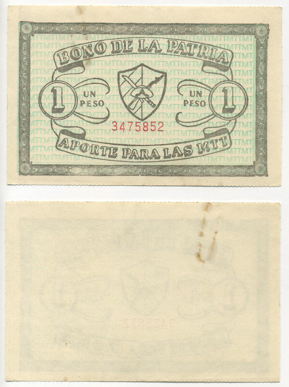 Куба вклад на 1 песо 1981 BONO DE LA PATRIA, APORTE PARA LAS MTT, вклад для МТТ (территориальные милицейские войска) бумага аUNC 6279-2-2-2