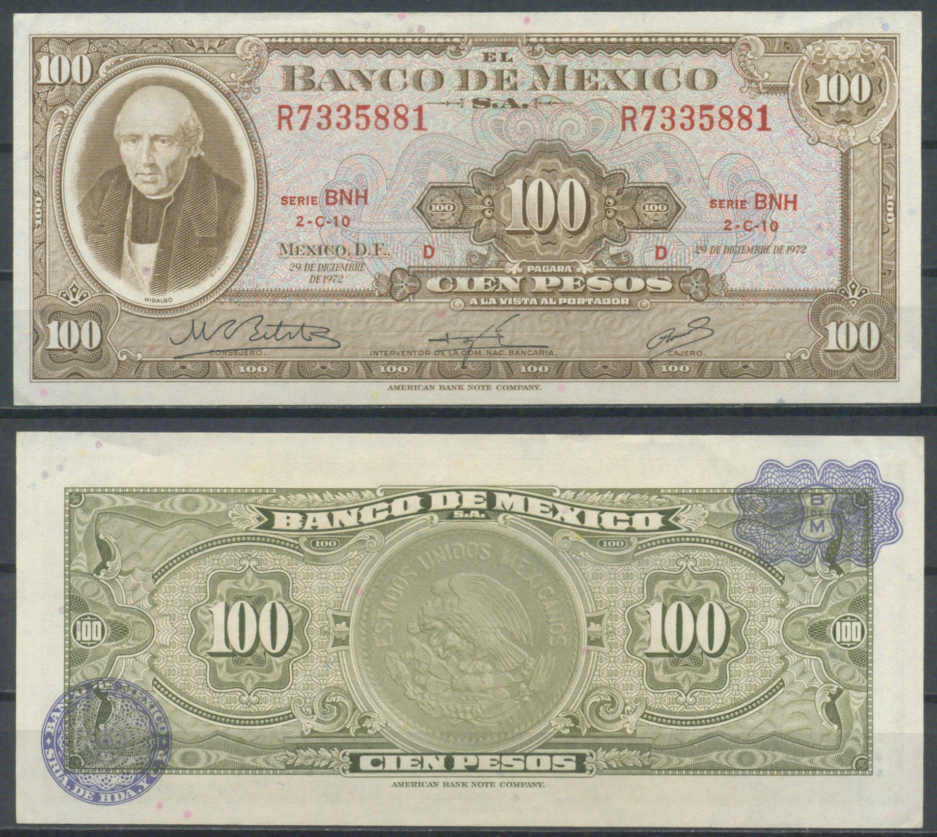 Мексика 100 песо 1972 Pick 61 h бумага UNC (пресс) 7221-39-2-1