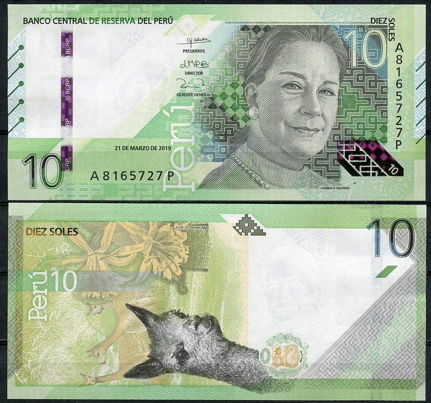 Перу 10 солей 2019 Чабука Гранда, викунья, цветок Аманки Pick 196 бумага UNC (пресс) 448-107-1