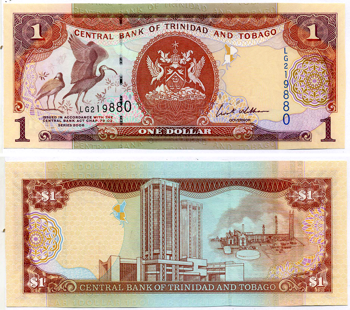Тринидад и Тобаго 1 доллар 2006 подпись 8, номер синий, TDLR Pick 46 бумага UNC (пресс) 2197-15-3-1