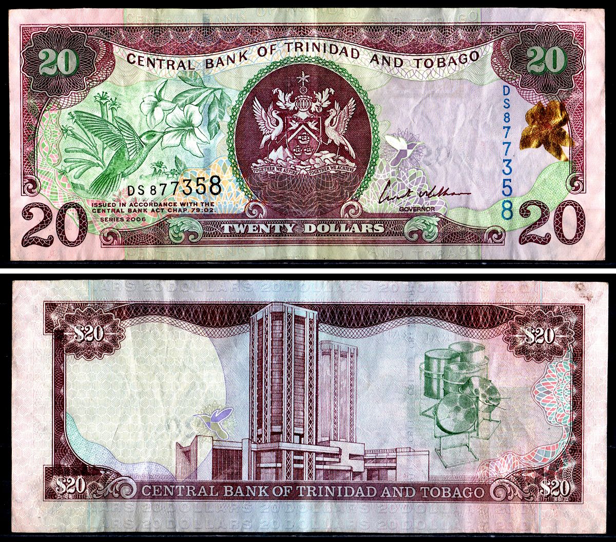 Тринидад и Тобаго 20 долларов 2006 Pick 49a бумага 3295-17-2-1