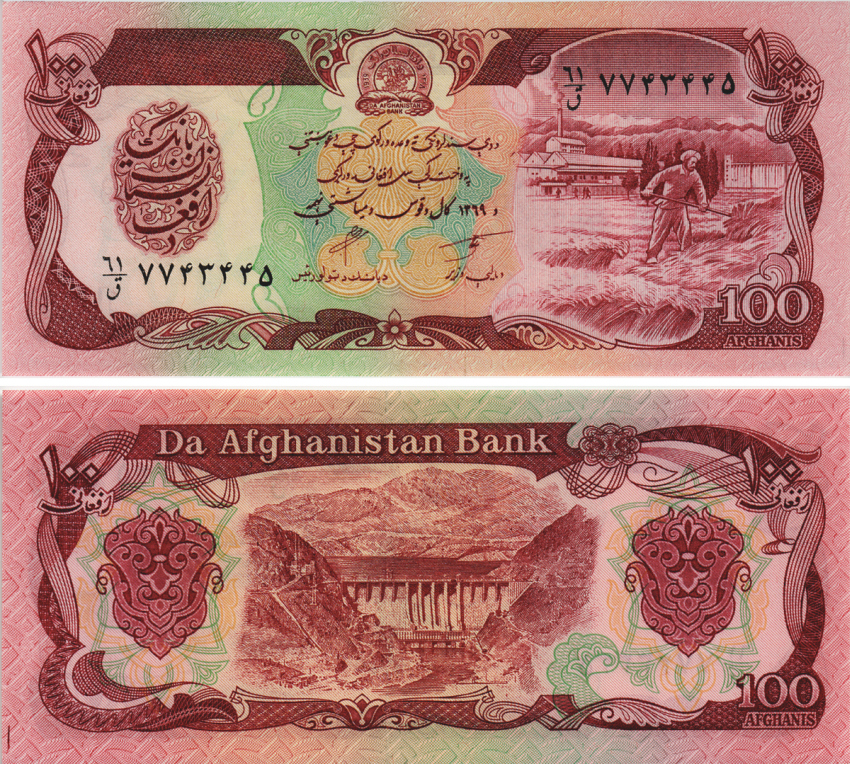 АФГАНИСТАН 100 АФГАНИ 1990 ГОД 1369, ДЕМОКРАТИЧЕСКАЯ РЕСПУБЛИКА Pick 58b бумага UNC (ПРЕСС) 8595-12-1-2