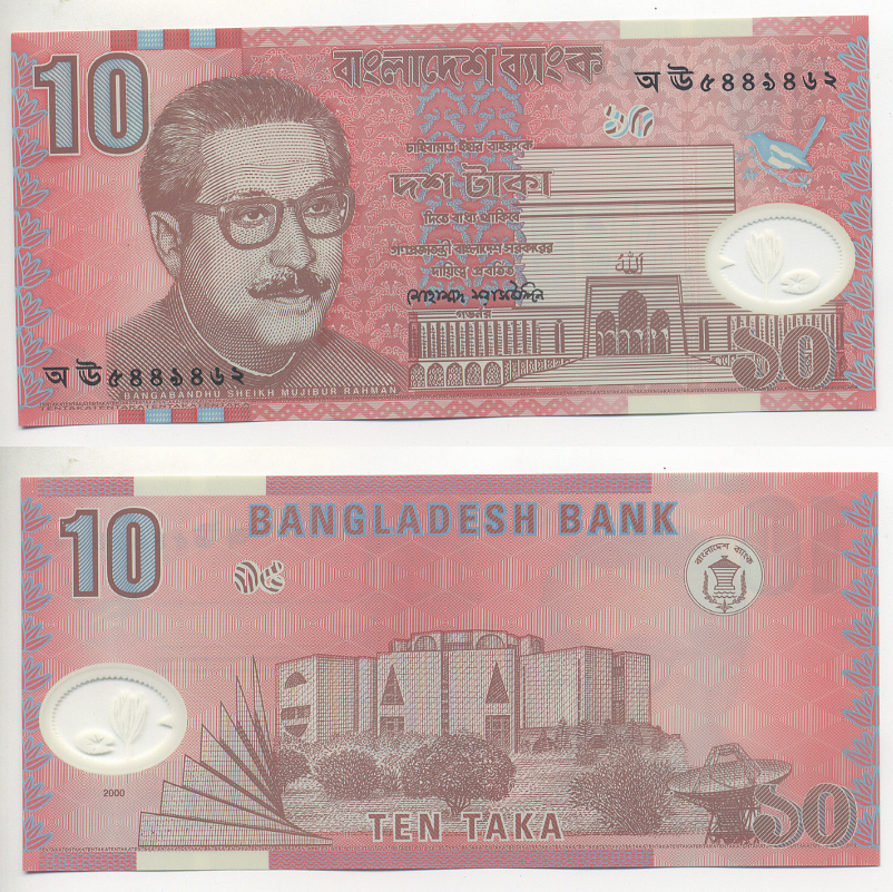 БАНГЛАДЕШ 10 ТАКА 2000 МУДЖИБУР РАХМАН, ПЕРВЫЙ ПРЕЗИДЕНТ Pick 35 пластик UNC (ПРЕСС) 7221-24-1