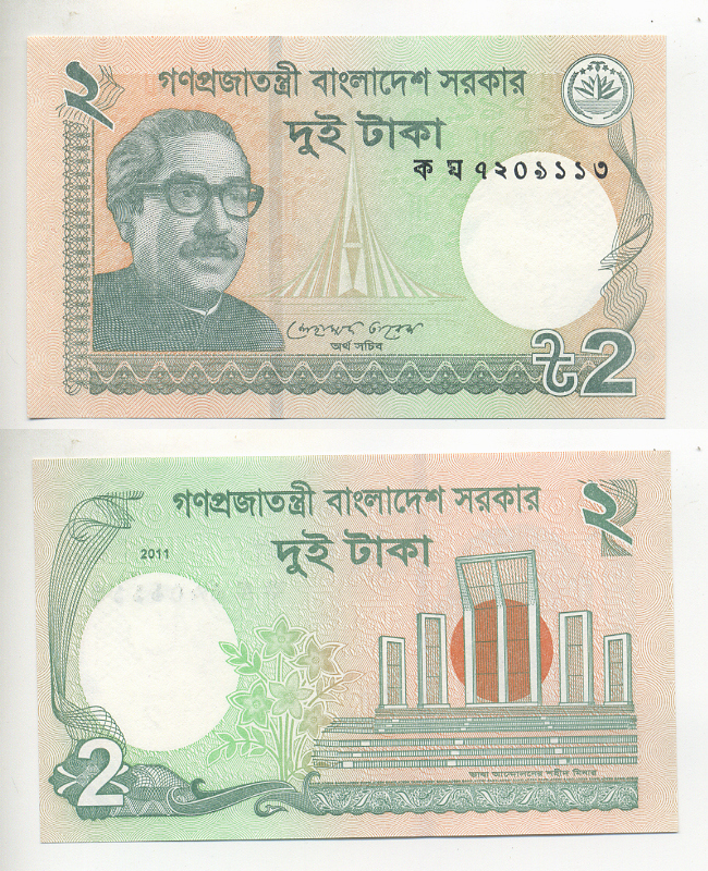 БАНГЛАДЕШ 2 ТАКА 2011 МУДЖИБУР РАХМАН, ПЕРВЫЙ ПРЕЗИДЕНТ Pick 52 бумага UNC (ПРЕСС) 7221-20-1