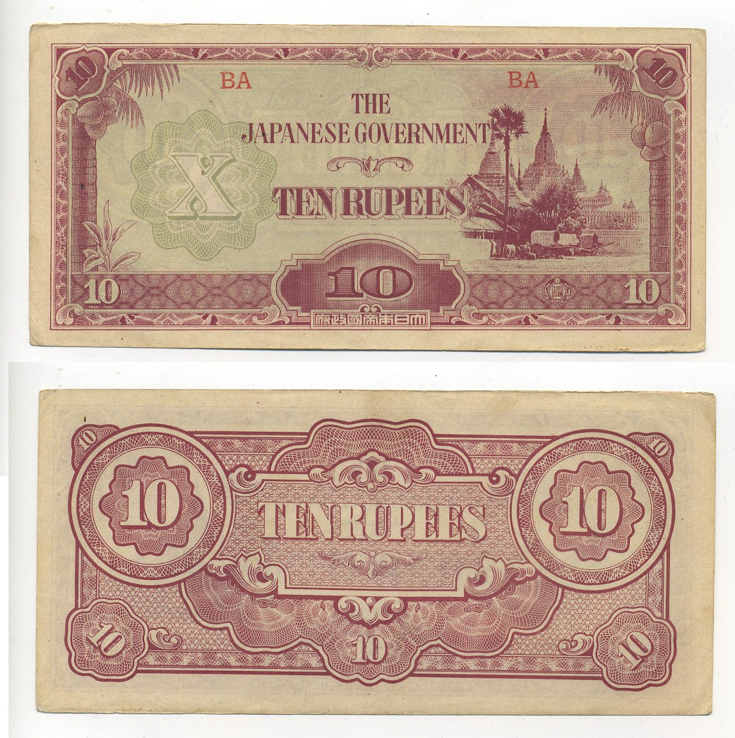 Бирма, Японская оккупация 10 рупий ND (1942-1944) Pick 16 b бумага 7217-67-1-1