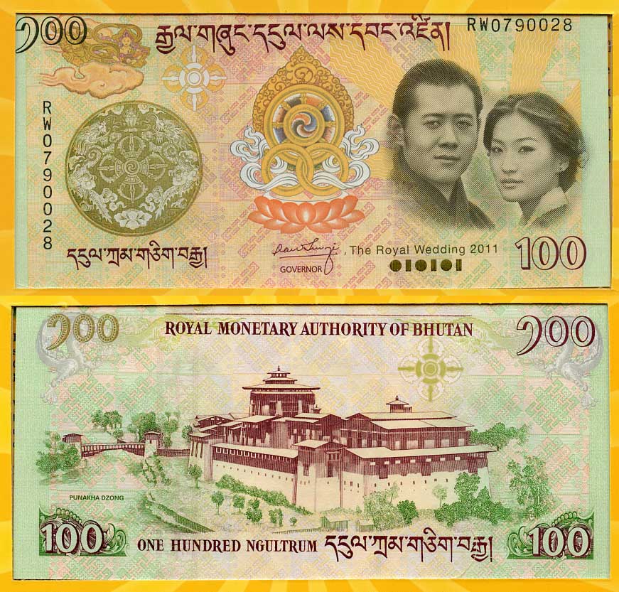 Бутан 100 нгултрумов 2011 королевская свадьба, Ташинчхо-дзонг, в оригинальном буклете Pick 35 a бумага UNC (пресс) 000-00-00