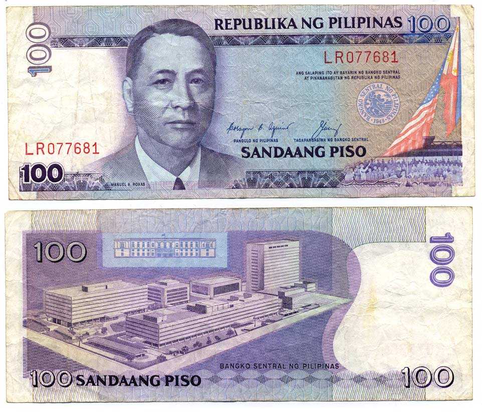 ФИЛИППИНЫ 100 ПЕСО 1987-1994 ПОДПИСЬ 12, ПРЕЗИДЕНТ МАНУЭЛЬ РОХАС Pick 172с бумага 7198-15-1-1