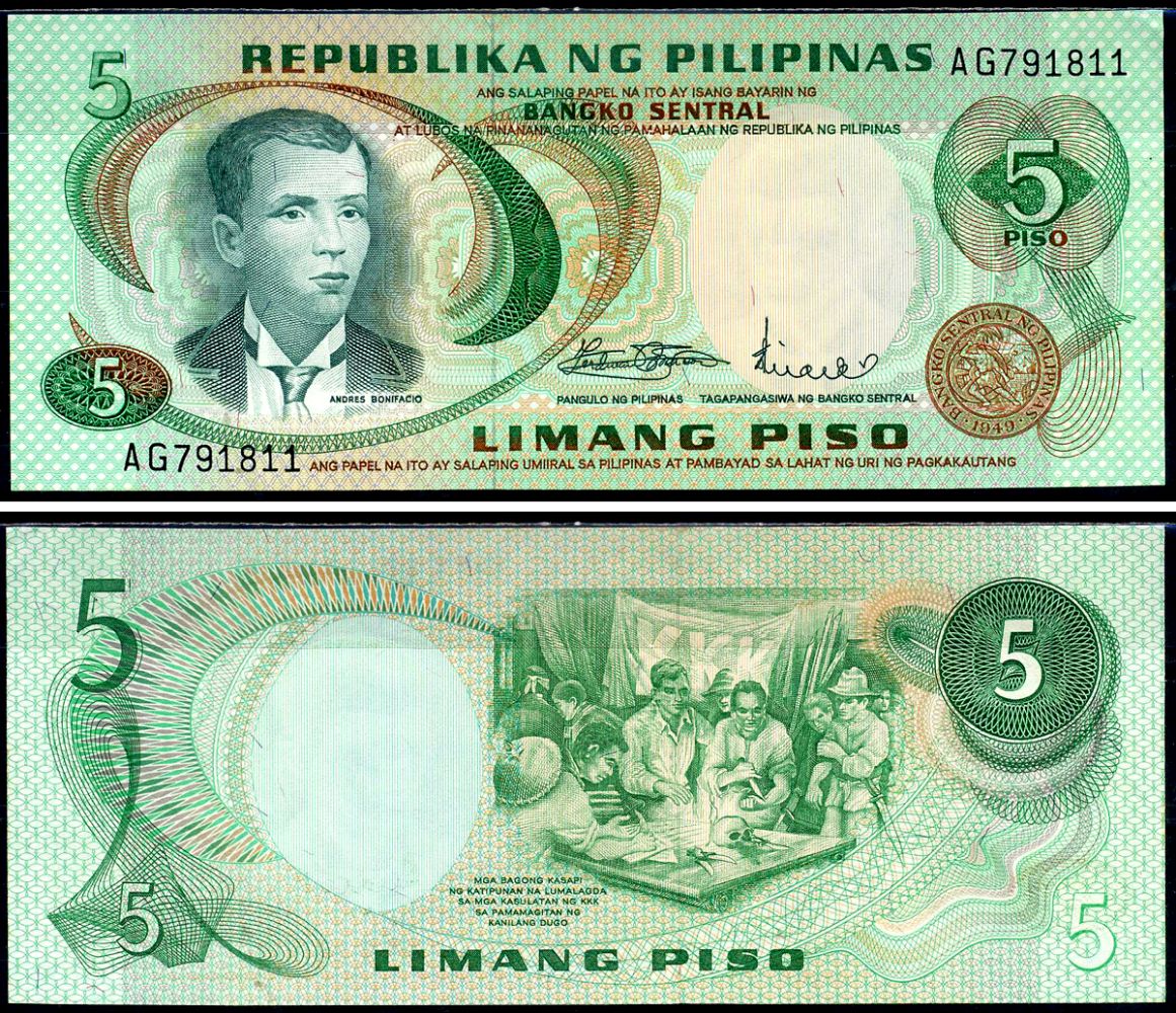 Филиппины 5 песо ND (1970) Pick 148a бумага aUNC 6278-42-2-2