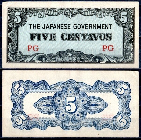 Филиппины 5 сентаво ND (1942) Японская оккупация, серия PG Pick 103 a бумага UNC (пресс) 446-94-3