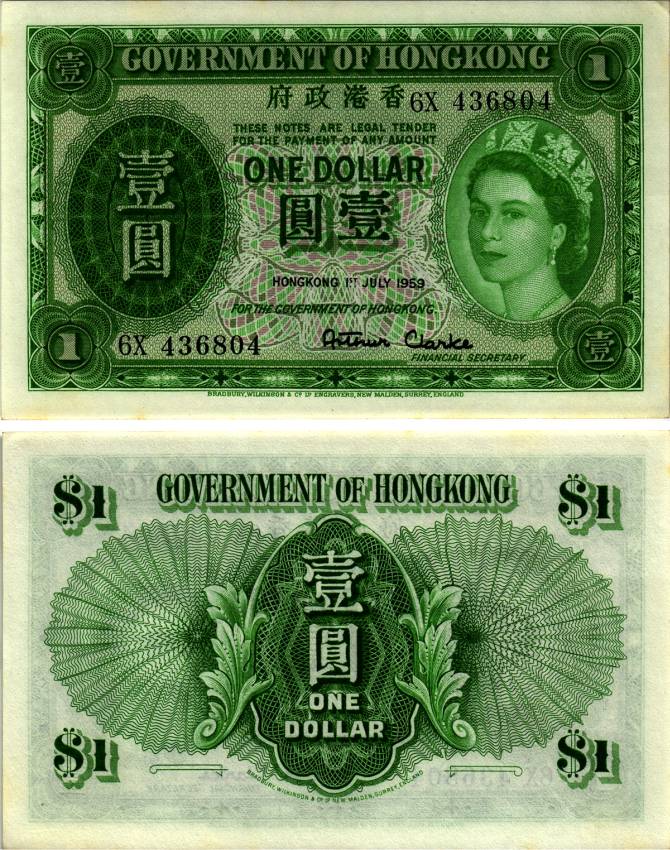 ГОНКОНГ 1 ДОЛЛАР 1959 1 ИЮЛЯ 1959 Pick 324Аb бумага UNC (ПРЕСС) 00-00