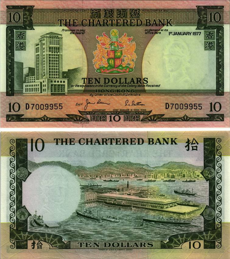 Гонконг 10 долларов 1977 1 января 1977, (CHARTERED BANK) Pick 74c бумага 451-413-3