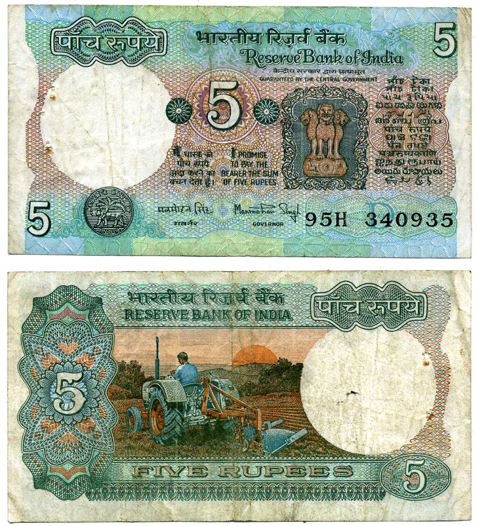 Индия 5 рупий 1982-1985 буква D, подпись Singh (1984-1985) Pick 80i бумага 6299-17-1-2