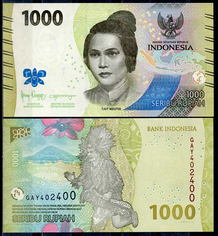Индонезия 1000 рупий 2022/2022 Тджет Нья Меутия, танцор Тифа, крепость Банданейра Pick 162 бумага UNC (пресс) 446-124-1